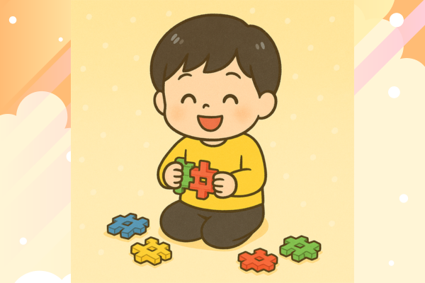 買った当初はイマイチの反応だったのですが、1か月ほどすると、指先の使い方や力の入れ方がわかってきたようで、平たくつなげたり、パーツを差し込んだりできるようにできるように。